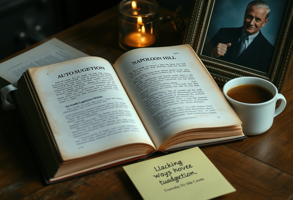 With these considerations, you can effectively use Napoleon Hill’s concept of autosuggestion to maintain daily motivation. By regularly affirming your goals and visualizing your success, you create a powerful mental framework that encourages positive thinking and persistence. Make these affirmations part of your routine, whether written or spoken, to reinforce your commitment and clarify your vision. Consistency is key; the more you engage with this practice, the deeper it embeds into your subconscious, propelling you toward your ambitions and helping you stay focused on your journey to success.